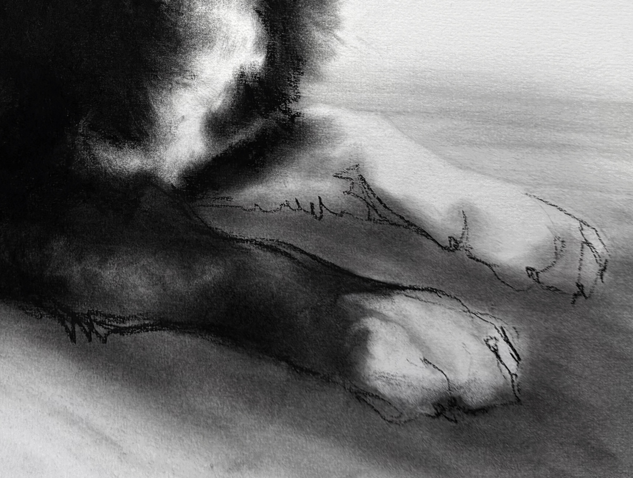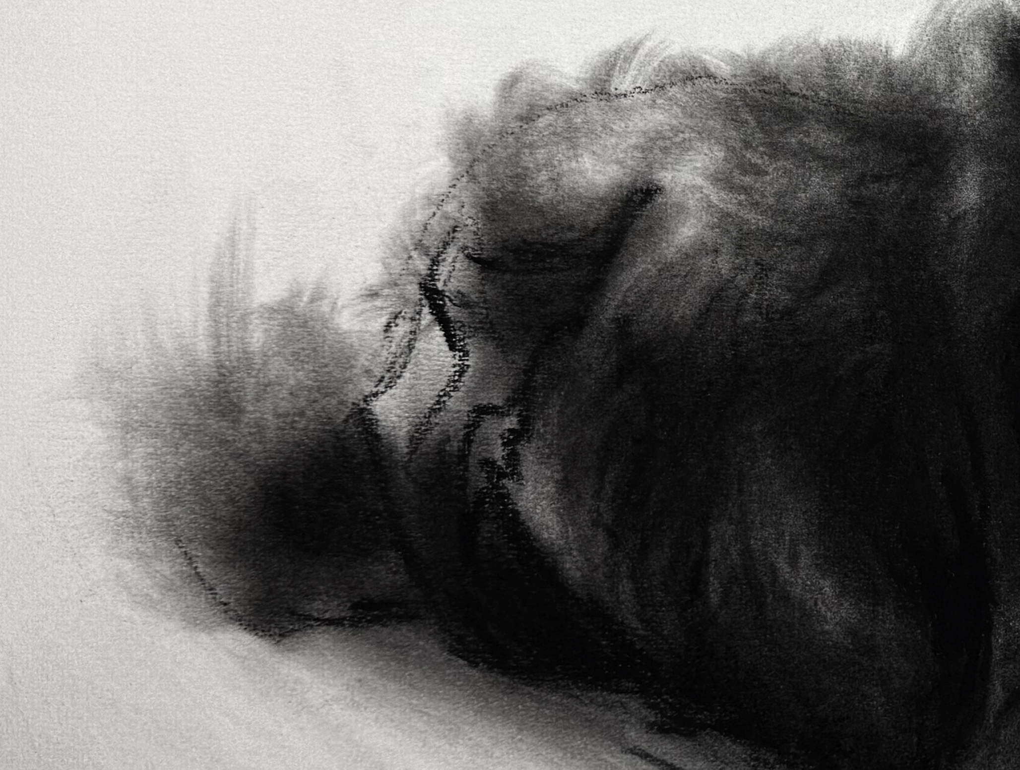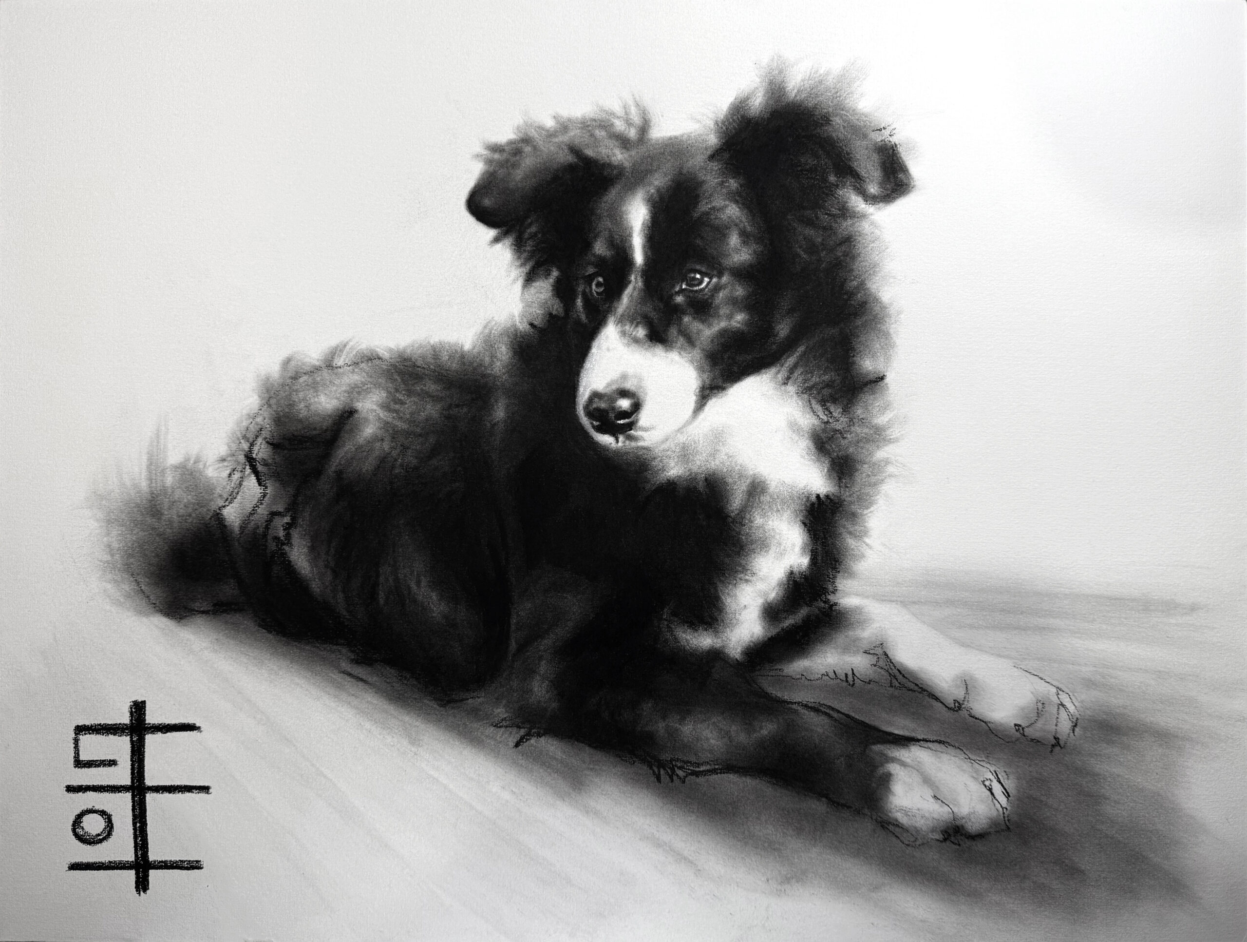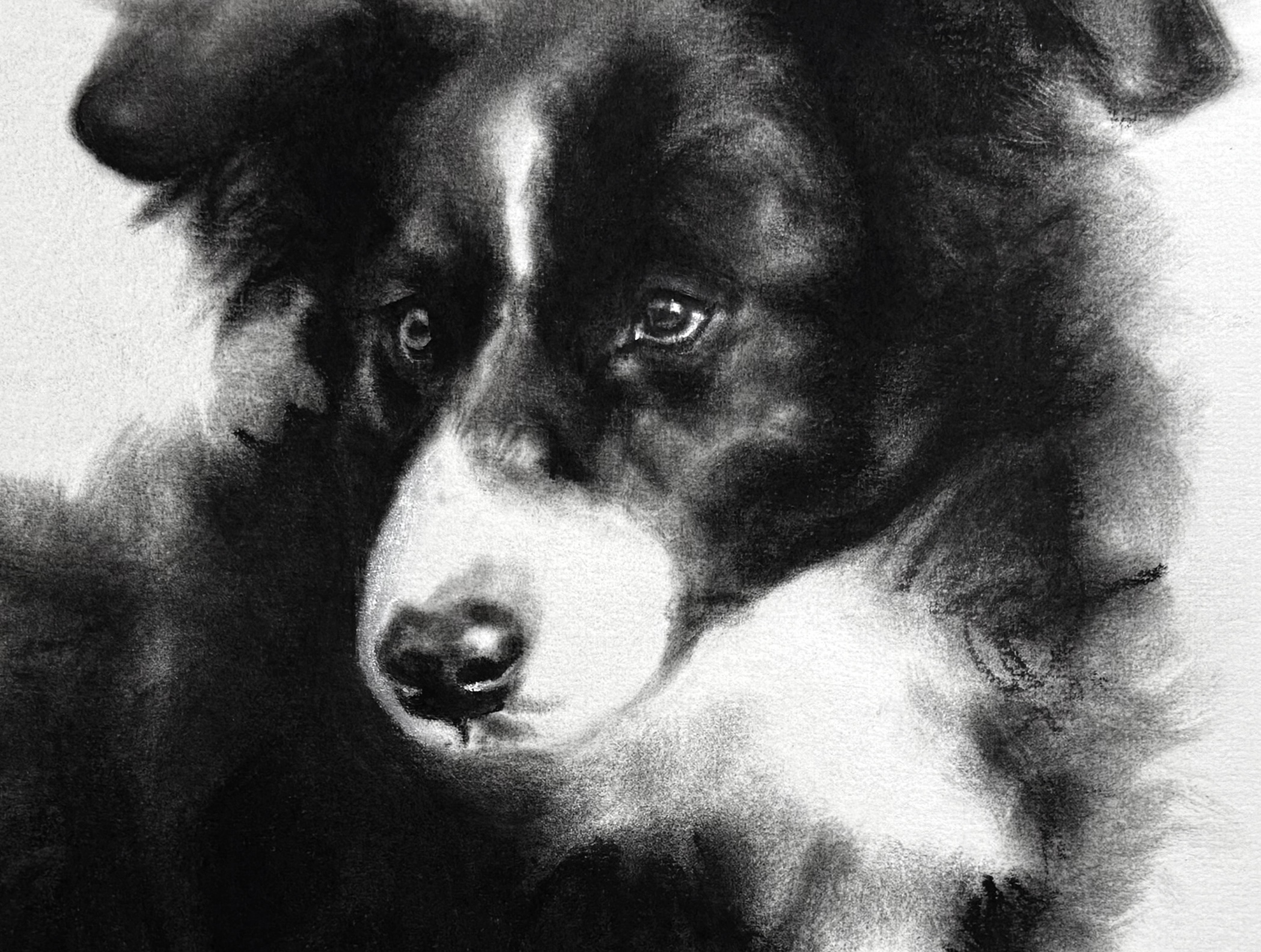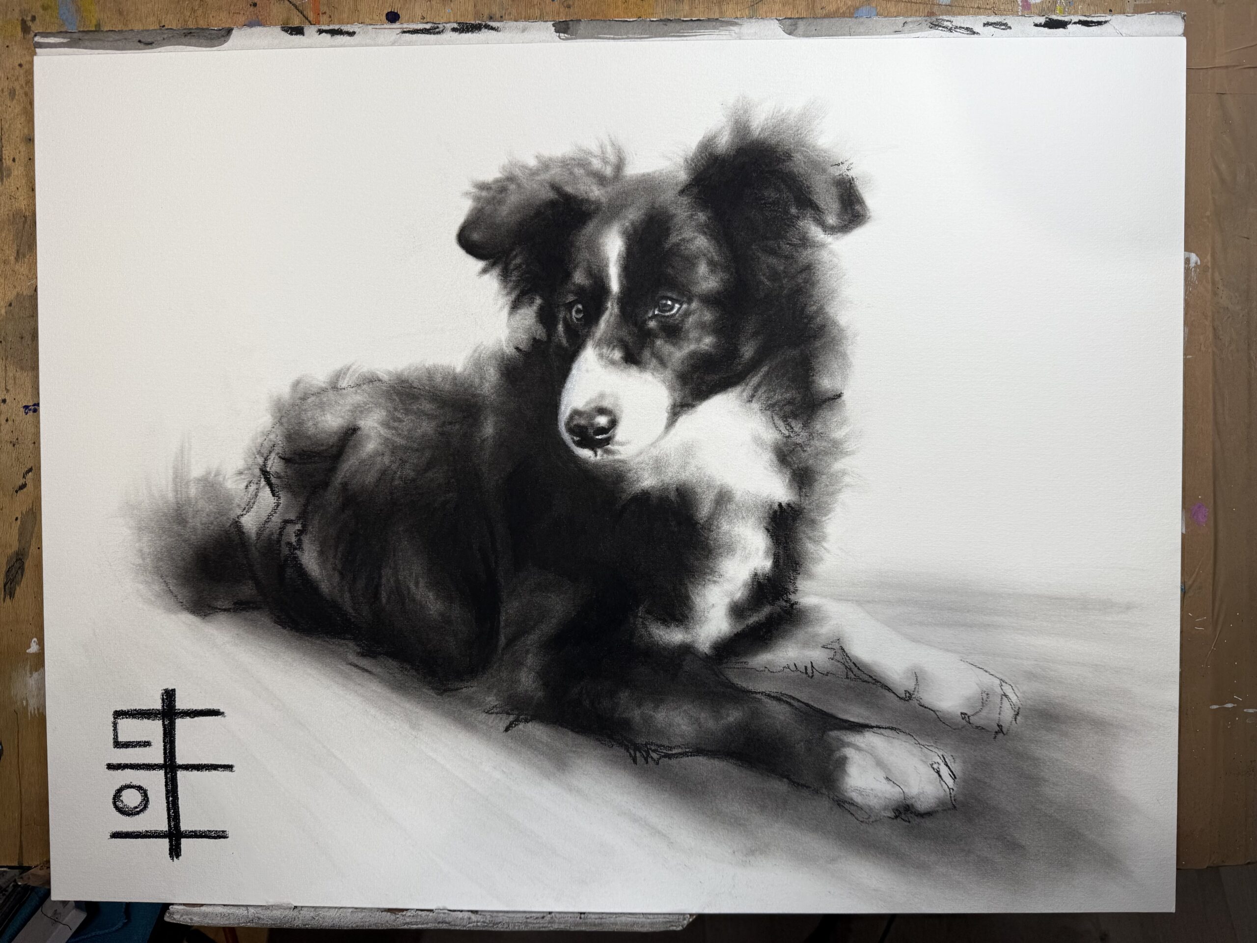 « Border Collie »  Fusain sur papier Format 61x46cm 2025