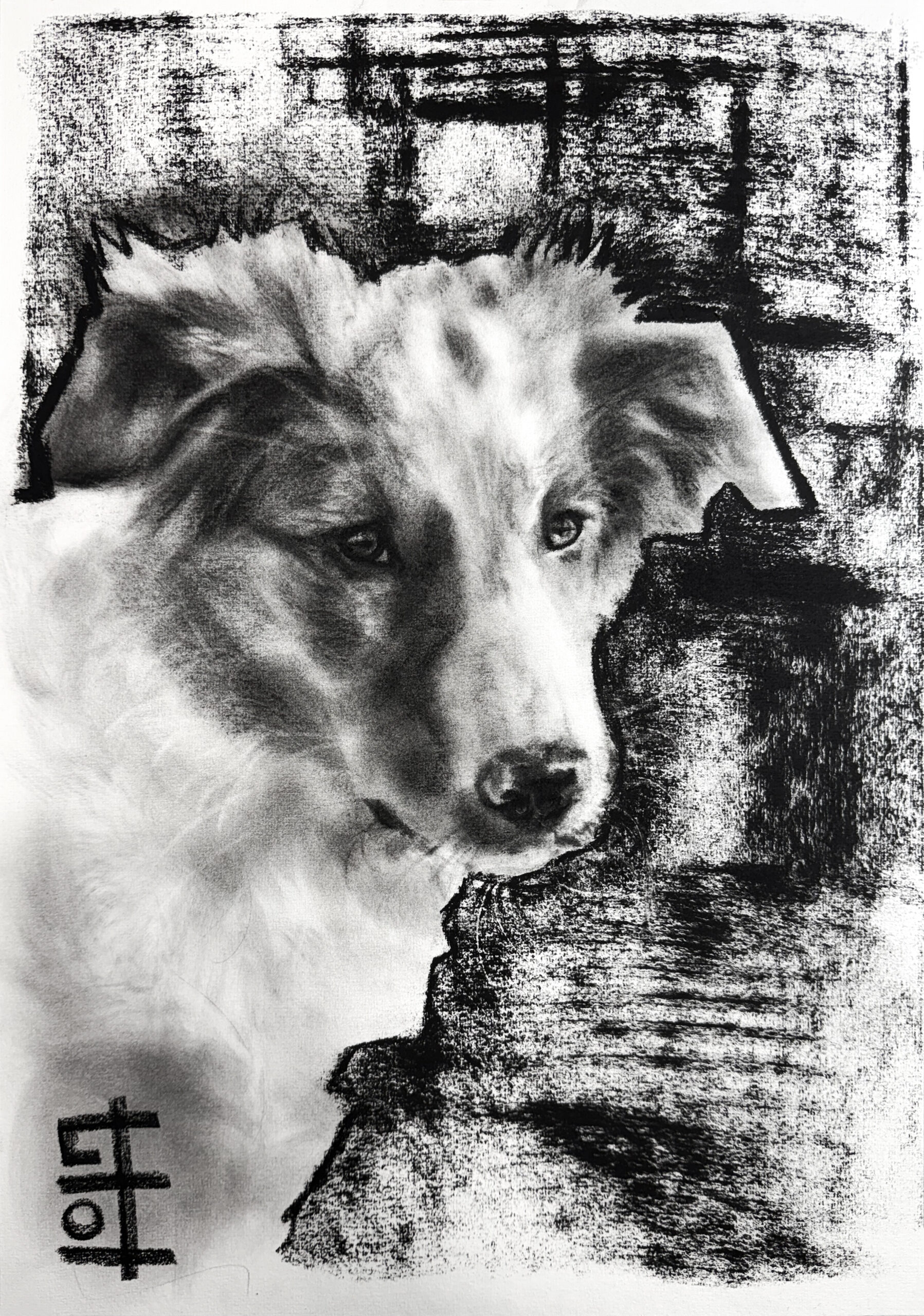 « Petit border collie » Fusain sur papier Format 51x36cm 2026